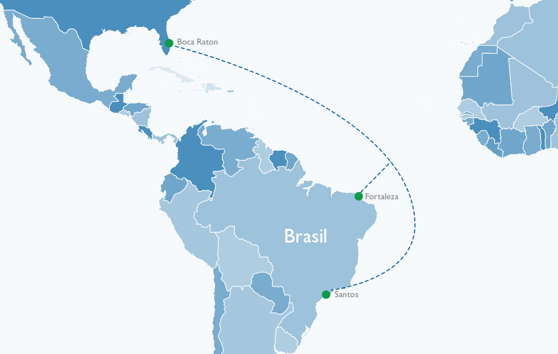 A Algar desenvolveu um projeto multinacional para a construção de um novo cabo submarino de fibra óptica, que conecta as cidades de Santos e Fortaleza, no Brasil, com a